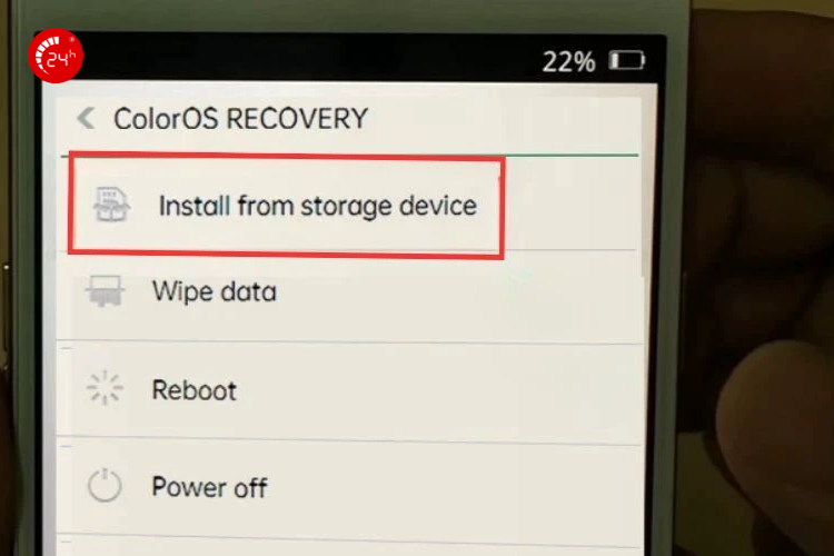 - Bước 5: Trong menu Recovery, chọn Install from storage để truy cập vào các tùy chọn cài đặt.