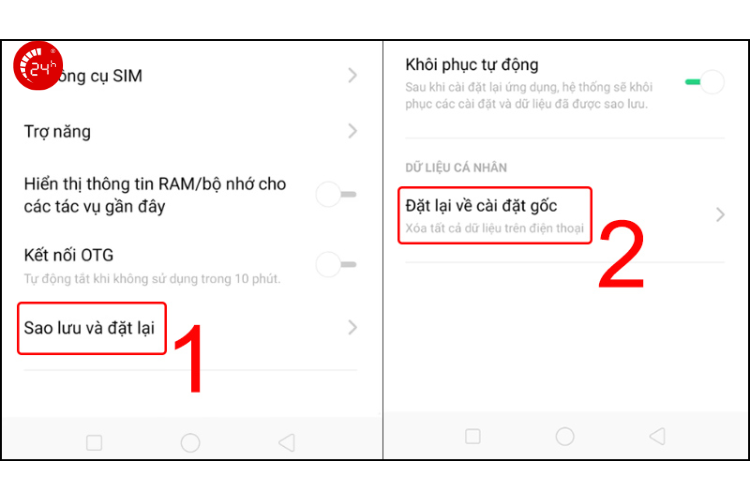Lưu ý: Cách cập nhật phần mềm OPPO này sẽ xóa sạch dữ liệu trên máy, bạn nên lưu trữ hình ảnh và video lên drive hoặc máy tính trước khi thực hiện. Hãy nhớ mật khẩu Google đang đăng nhập trên máy. Sau khi đặt lại, máy sẽ yêu cầu nhập lại để xác minh danh tính.