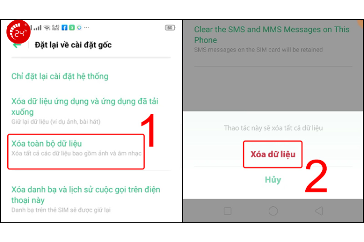 - Chọn Xóa toàn bộ dữ liệu > Xóa dữ liệu để xác nhận.