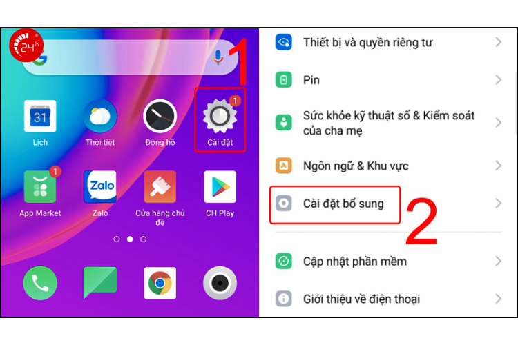 1.1. Bước 1: Mở ứng dụng Cài đặt trên điện thoại OPPO