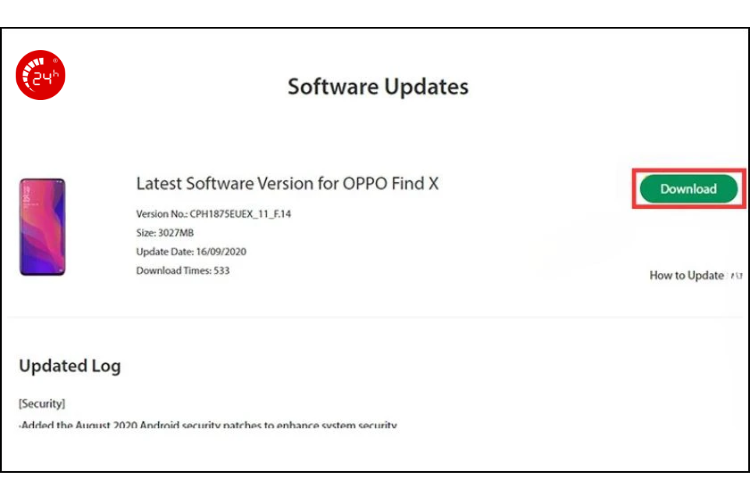 - Bước 1: Truy cập trang chính thức của OPPO: https://support.oppo.com/au/software-update/ tìm đúng bản cho dòng máy của bạn để tải file ROM.