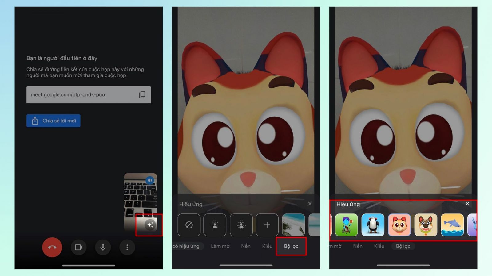 1.1. Dùng filter trên Google Meet bằng điện thoại