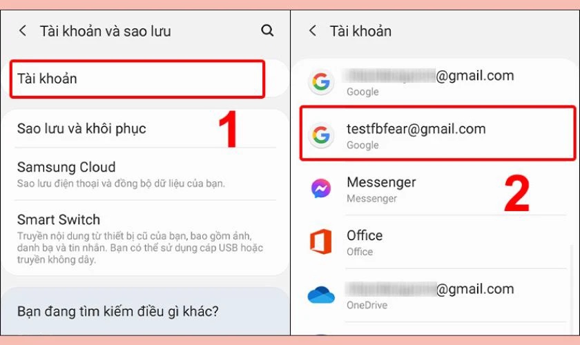 Bước 2: Nhấn vào phần Tài khoản, rồi tìm và chọn tài khoản Google mà bạn muốn đăng xuất.
