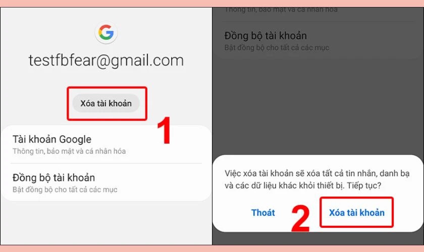 Bước 3: Chọn Xóa tài khoản, sau đó xác nhận lại bằng cách nhấn Xóa tài khoản thêm lần nữa để hoàn tất.