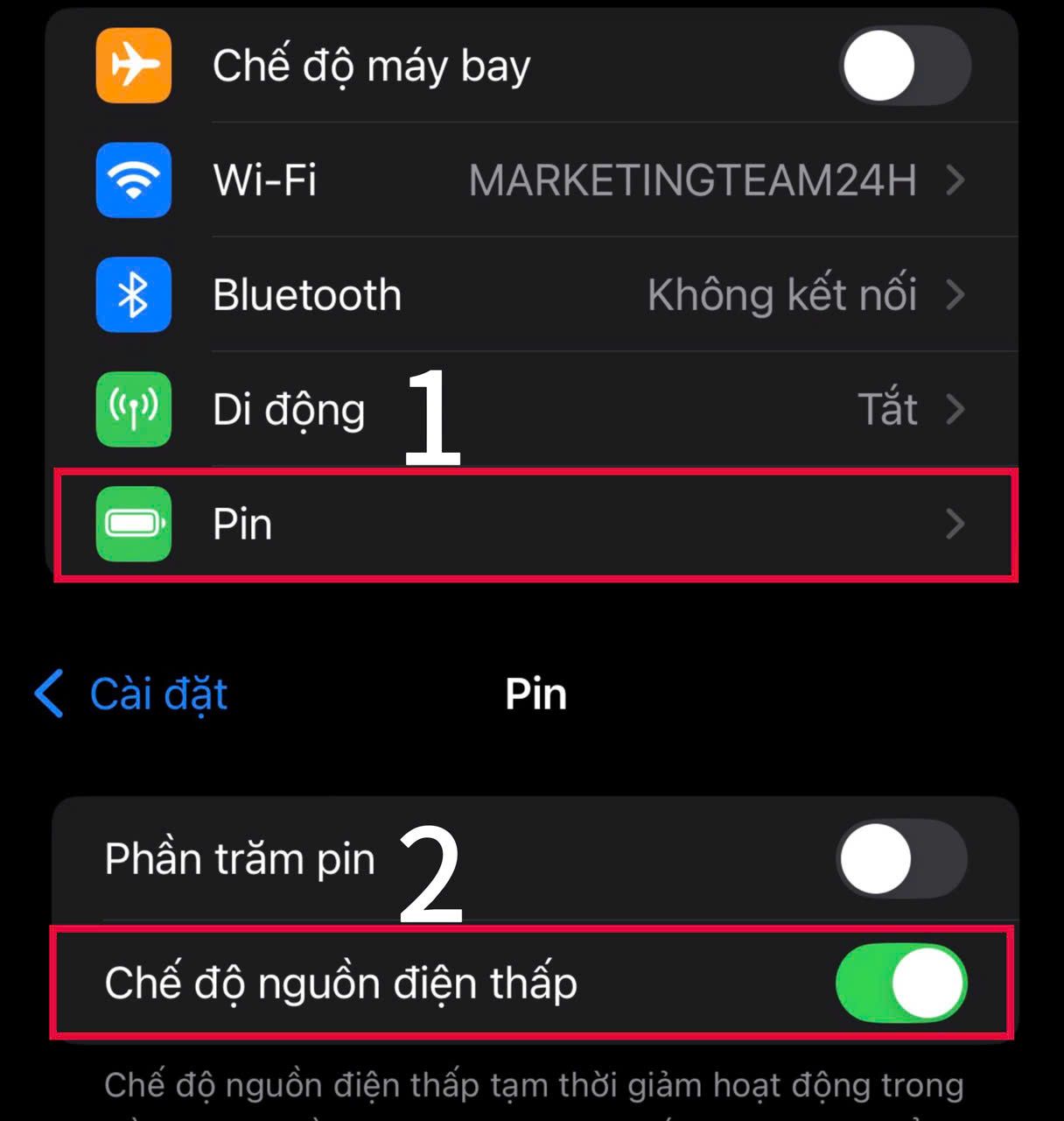 Bước 3: Bật chế độ nguồn điện thấp (Low Power Mode).