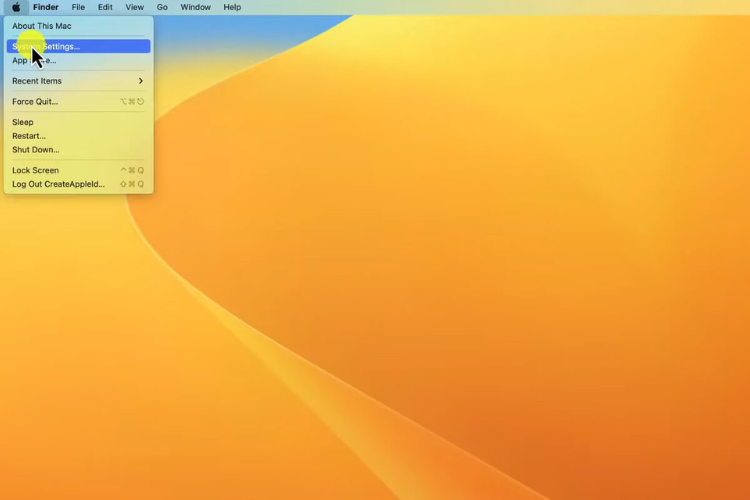 - Bấm vào biểu tượng Apple > Cài đặt hệ thống.