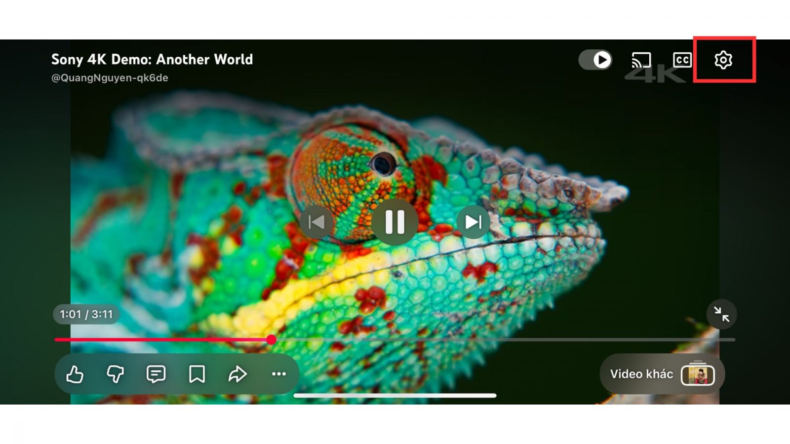 - Bước 1: Mở ứng dụng YouTube trên iPhone và chọn video mà bạn muốn xem. Khi video bắt đầu phát, hãy chạm vào màn hình rồi nhấn vào biểu tượng Cài đặt (hình bánh răng) ở góc trên của khung video.