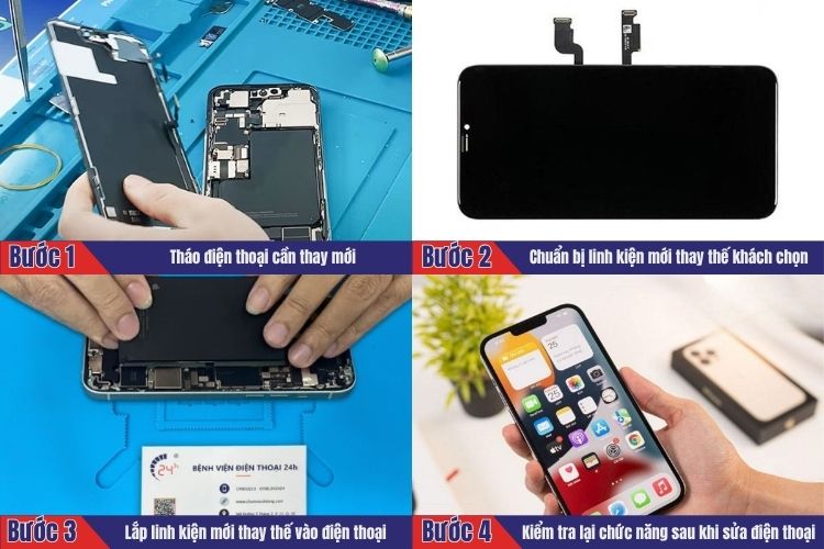Tại Bệnh Viện Điện Thoại, Laptop 24h quy trình sửa chữa điện thoại được thực hiện một cách chuyên nghiệp, nhanh chóng và chính xác, đảm bảo mang lại sự hài lòng cho khách hàng. Các bước thực hiện như sau: