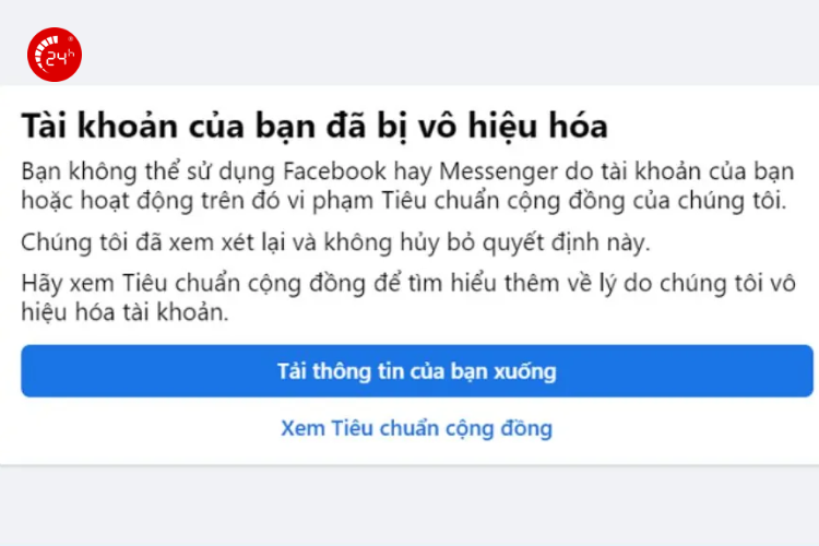 - Tài khoản Facebook bị vô hiệu hóa vĩnh viễn: Vi phạm tiêu chuẩn cộng đồng, đăng tải nội dung cấm, hoặc bị báo cáo mạo danh.