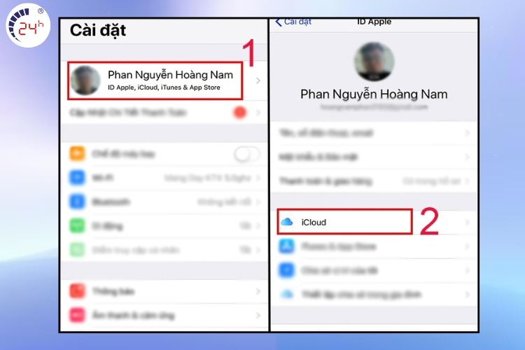 - Vào Cài đặt > Tên của bạn > iCloud.