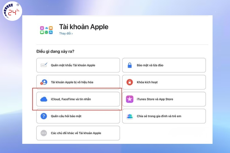 Bước 3: Trong danh sách các vấn đề hỗ trợ, hãy tìm và chọn dòng iCloud, FaceTime và tin nhắn.