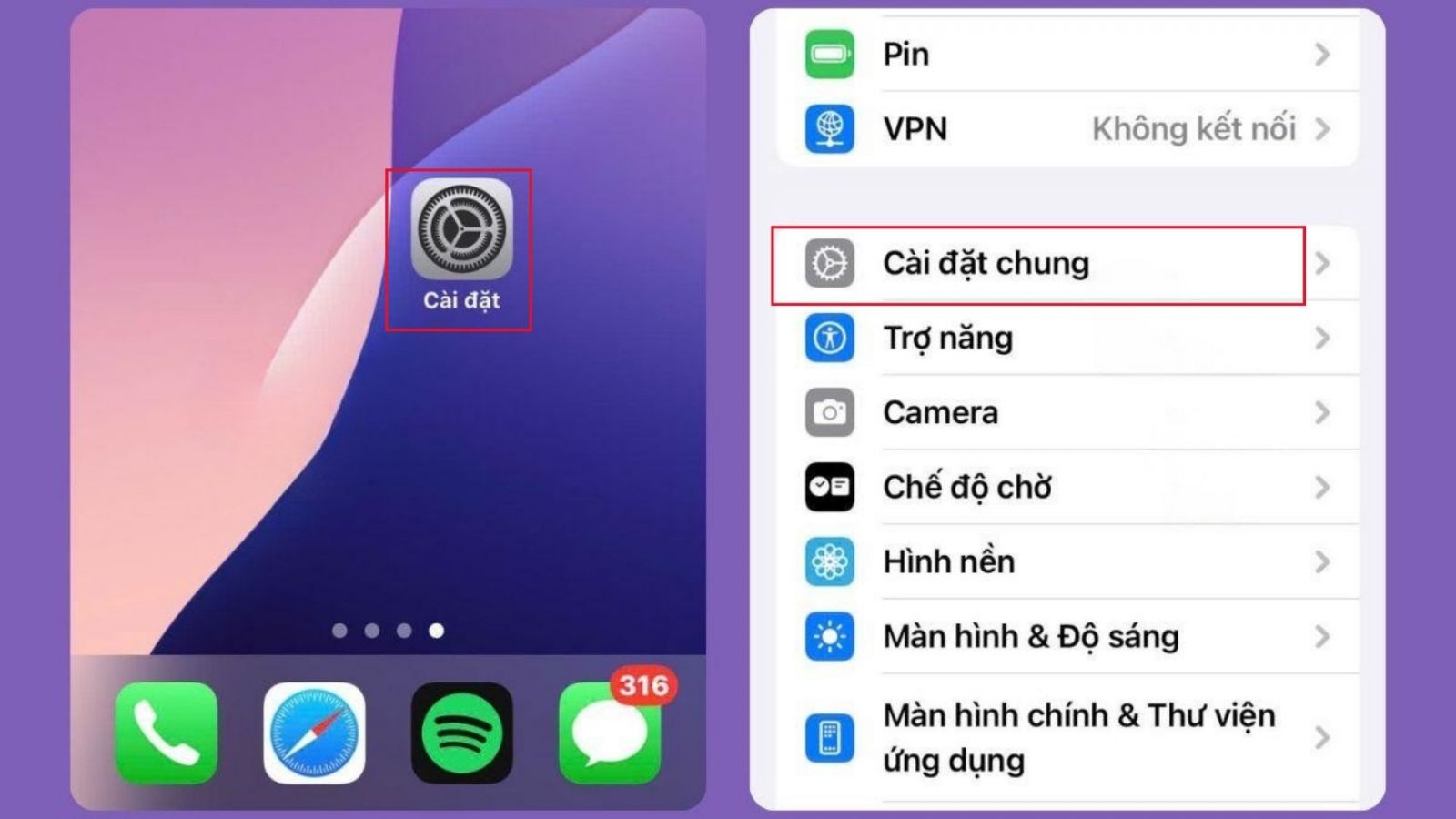 Bước 1: Mở Cài đặt → vào Cài đặt chung.