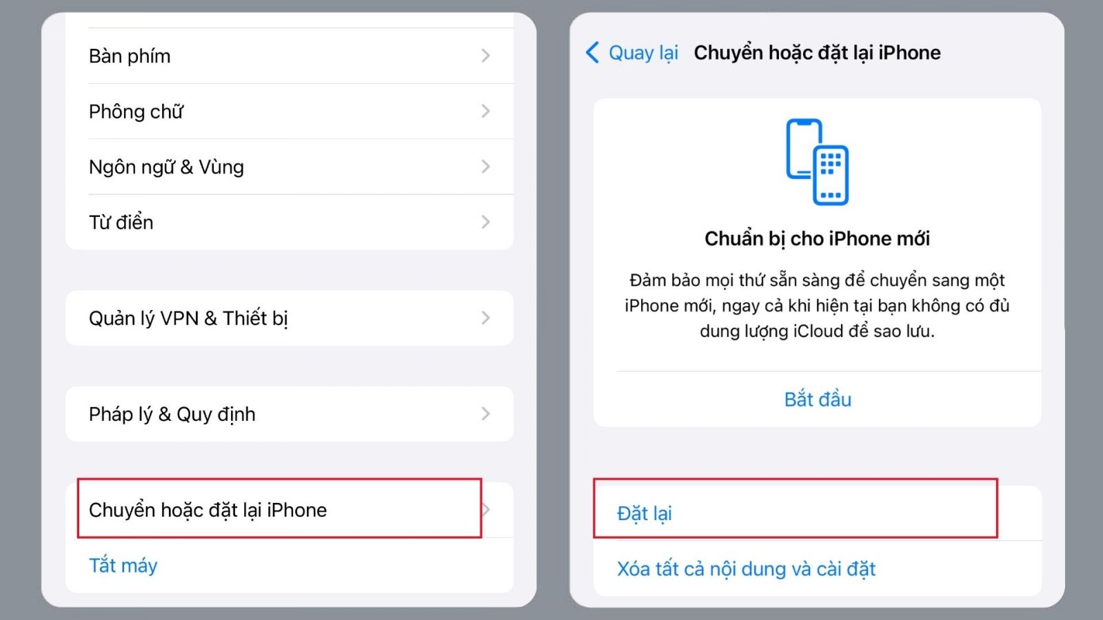 Bước 2: Chọn Đặt lại iPhone → nhấn Đặt lại.