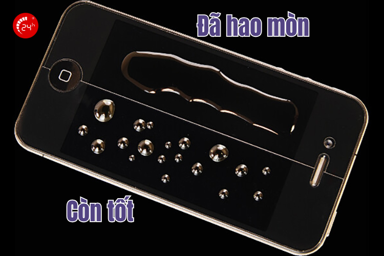 - Còn tốt: Giọt nước vo tròn như hạt ngọc, lăn đi nhanh chóng mà không để lại vệt khi nghiêng máy.