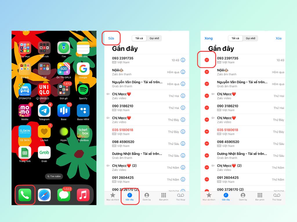 Bước 3: Chạm vào dấu “–” tương ứng với cuộc gọi bạn muốn xóa, rồi xác nhận Xóa. Bản ghi đó sẽ ngay lập tức được loại khỏi danh sách.