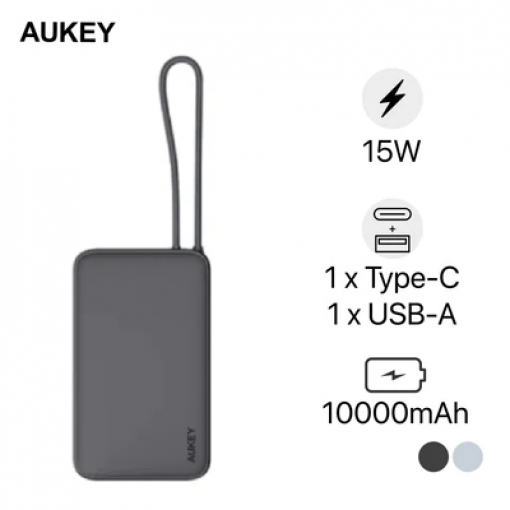 Sạc dự phòng Aukey PB-Y53 Spark Sling 10000mAh 15W kèm cáp USB-C