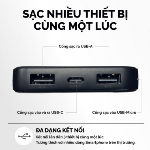 | Đầu ra: | 2 cổng USB-A 5V-2.1A, USB-C 5V-2.1A |