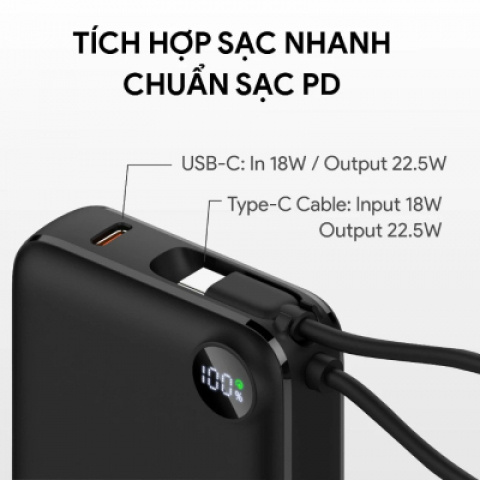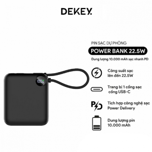 Sạc Dự Phòng DEKEY Power Pioneer 10.000mAh USB-C PD Power Bank 22.5W kèm cáp Type-C