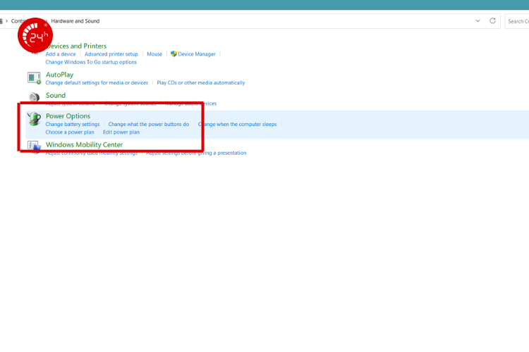 - Chọn Power Options.
