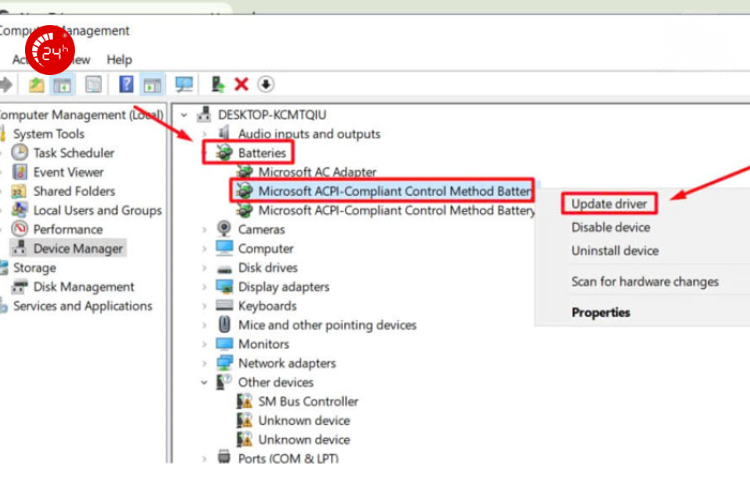 Driver pin bị lỗi hoặc đã quá cũ là nguyên nhân phổ biến khiến laptop không nhận sạc. Để xử lý, bạn hãy: