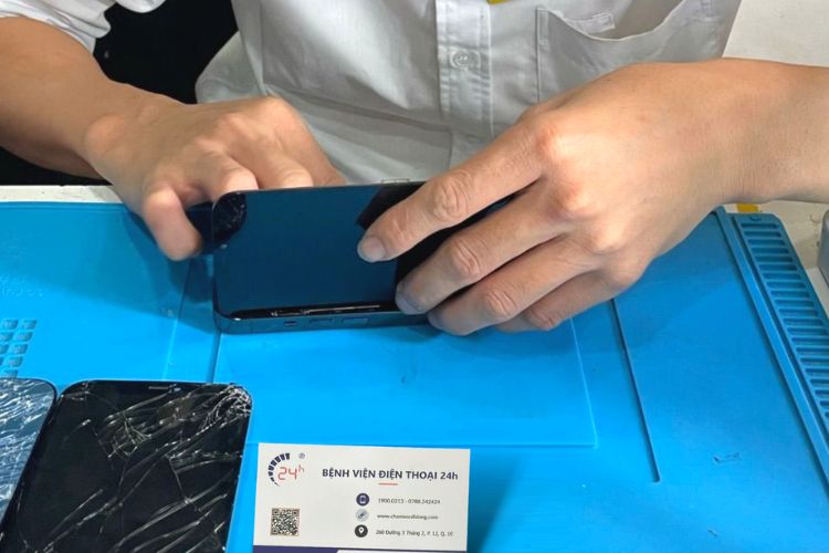 Trước khi bắt đầu thay màn hình, kỹ thuật viên của Bệnh Viện Điện Thoại Laptop 24h sẽ kiểm tra tình trạng tổng thể trên điện thoại của bạn, bao gồm các chức năng cảm ứng, Touch ID hoặc Face ID, camera, loa, mic và pin.