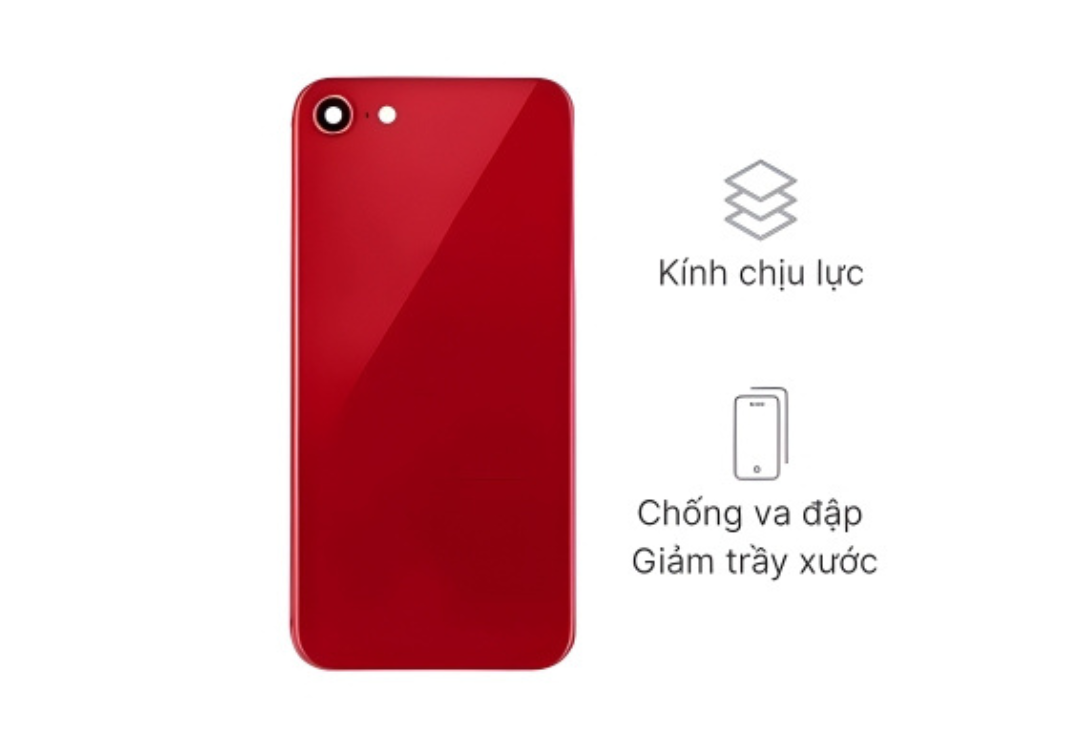 Để mặt sau của iPhone SE 2020 trông sáng bóng và hạn chế trầy xước, hãng còn trang bị một tấm kính cường lực Gorilla Glass 2D. Tuy nhiên, loại kính cường lực này không giúp người dùng bảo vệ phần vỏ của điện thoại trong mọi trường hợp va đập bất ngờ.