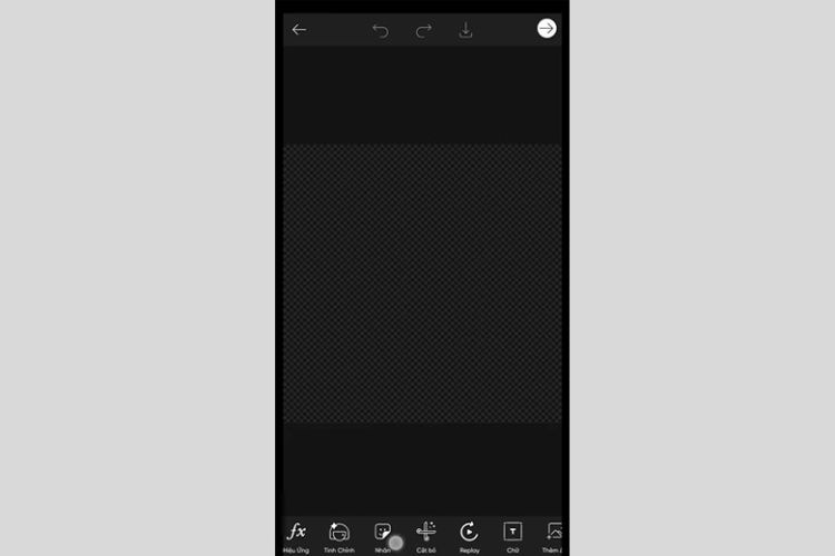 Bước 8: Sau đó, bạn hãy bấm chọn vào biểu tượng mũi tên chỉ xuống dưới nằm ở thanh công cụ trên đầu màn hình để tải ảnh vừa mới tạo về điện thoại của bạn.