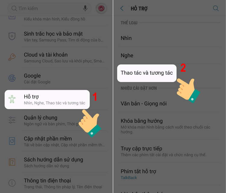 Bước 3: Nhấn chọn vào thao tác và tương tác.