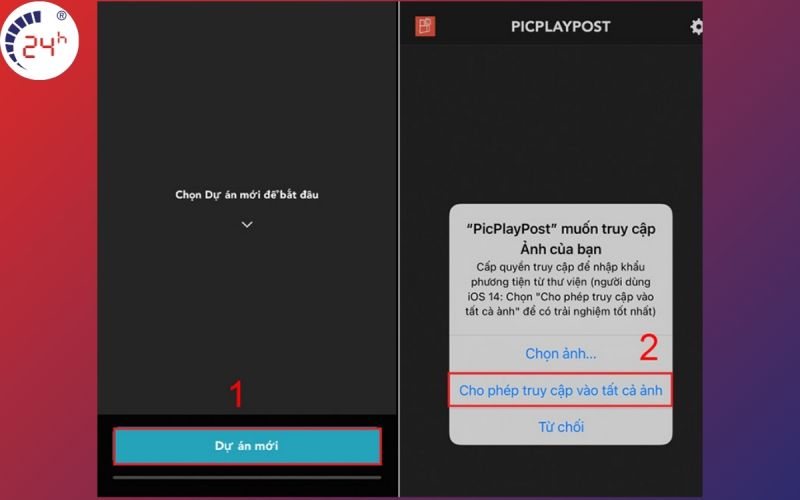 Bước 2: Mở PicPlayPost, chọn mục Dự án mới và chọn Cho phép truy cập vào tất cả ảnh.