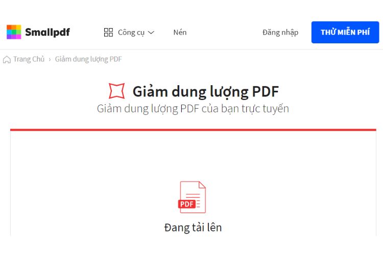 Bước 1: Để bắt đầu, bạn hãy truy cập website của SmallPDF. Tiếp đó, bấm chọn Giảm dung lượng PDF.