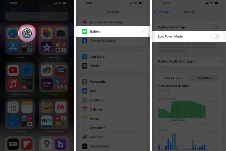 Chế độ nguồn điện thấp hạn chế các tác vụ nền như tải xuống nội dung mới. Vì vậy, nó có thể ảnh hưởng đến việc phát lại video trên Instagram. Do đó, hãy tắt nó đi để sửa lỗi Instagram không tự động phát video.