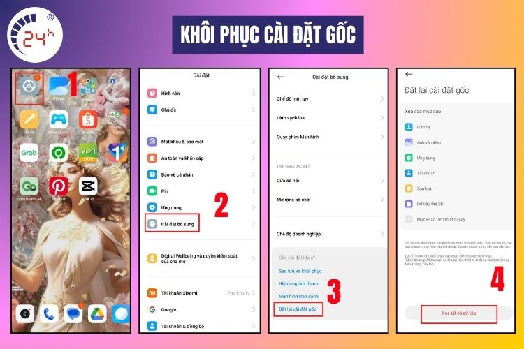 Trong trường hợp thiết bị vẫn truy cập được vào phần Cài đặt, bạn có những cách khắc phục điện thoại bị trắng màn hình khác và có thể đưa máy về trạng thái ban đầu để khắc phục lỗi phần mềm. Các bước thực hiện như sau: