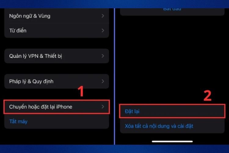 Bước 2: Chọn Chuyển hoặc đặt lại iPhone, sau đó nhấn vào Đặt lại để tiếp tục.