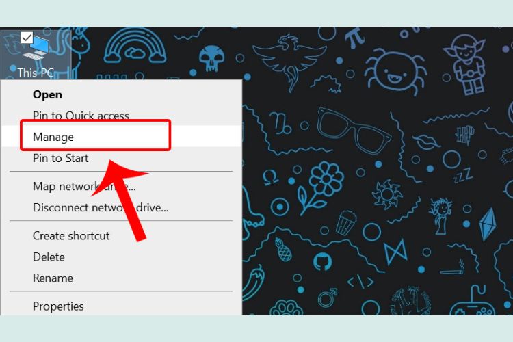 Bước 1: Nhấn chuột phải lên This PC > Chọn Manager.