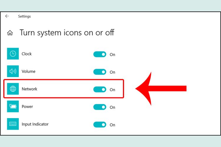 Bước 3: Nhấn Turn system icons on or off để xem Wi-Fi có bị tắt hay không.