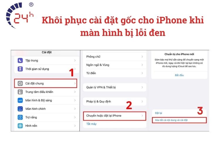 2.3 Khôi phục cài đặt gốc cho iPhone khi màn hình bị lỗi đen