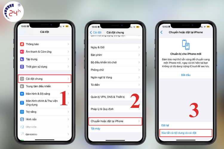 Nếu các cách trên không hiệu quả, khôi phục cài đặt gốc có thể giúp loại bỏ những lỗi phần mềm nghiêm trọng gây ra tình trạng màn hình iPhone bị chập chờn. Tuy nhiên, bạn cần sao lưu dữ liệu trước khi thực hiện để tránh mất mát thông tin quan trọng.
