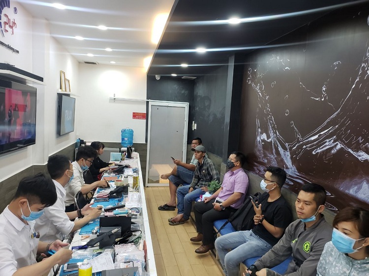 Thoạt tiên, phía tiếp tân sẽ ghi nhận chi tiết họ tên của khách hàng cùng với tình trạng thiệt hại trên điện thoại và đề ra kinh phí sửa chữa tương xứng. Sau khi khách xác nhận chắc chắn rằng sẽ sửa chữa tại trung tâm, ban điều phối sẽ tiếp nhận máy và chuyển đến bộ phận kỹ thuật.